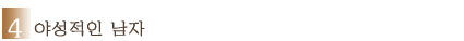 무술을 연마하다가 막 하산한 듯한 야성미를 풍기는 남자. 길을 걷다가 갑자기 여자에게 키스를 하는 등 돌출행동을 많이 한다. 길들여지지 않는 야생마의 마력이라고 해야 할까. 여자를 당황스럽게도 만들지만 왠지 모르게 끌리는 타입인 건 사실이다. 이런 남자가 되려면 여자에게 너무 잘 해주지 말고, 너무 무관심하지도 않으면서 시소를 타듯 감정의 중심을 잡아라. 백 번 못해주다가도 한 번 잘해주면 그것에 감동 받는 것이 여자다. 무관심한 척 하다가 갑자기 선물을 사준다거나 해줘봐라. 안 넘어올 여자 없다. 또 가끔 써먹어 볼만한 행동으로는 소주를 병나발째 분다거나, 셔츠 단추를 풀어서 가슴털을 보여준다거나, 폭력적이다 싶을 정도로 여자를 끌어안는 것 등이 있다. |